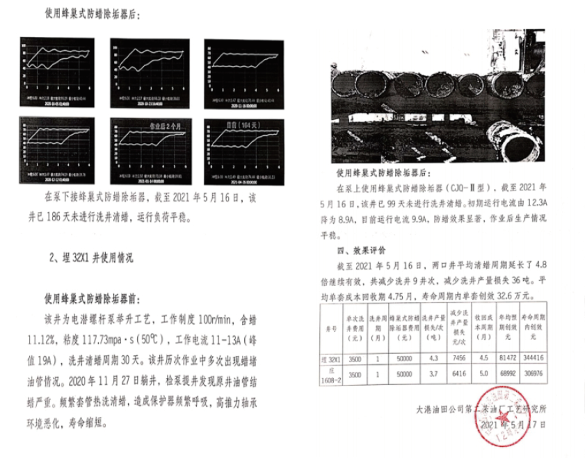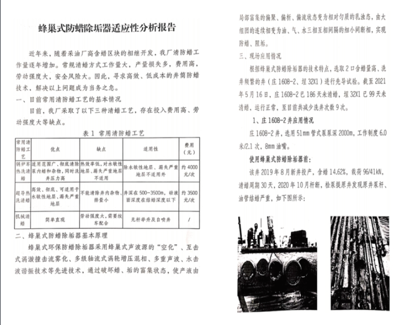 中石油大港油田蜂巢式防蜡除垢器应用评价